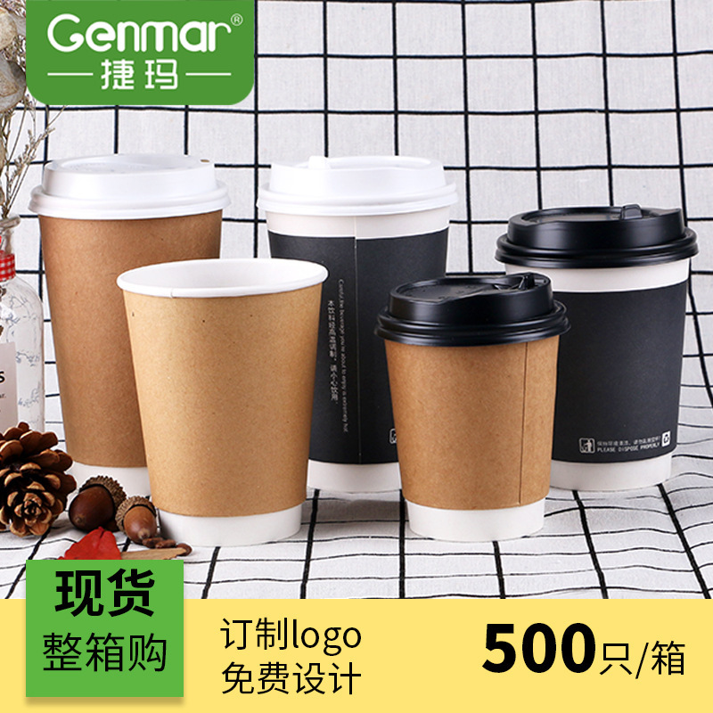 捷玛 牛皮双层隔热中空杯一次性咖啡纸杯定做奶茶杯奶茶打包杯子