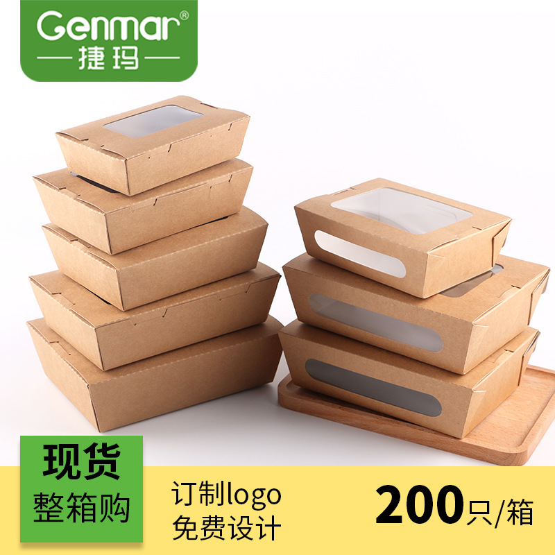 捷玛 牛皮纸水果沙拉盒一次性餐盒外卖打包盒食品包装盒饭盒批发