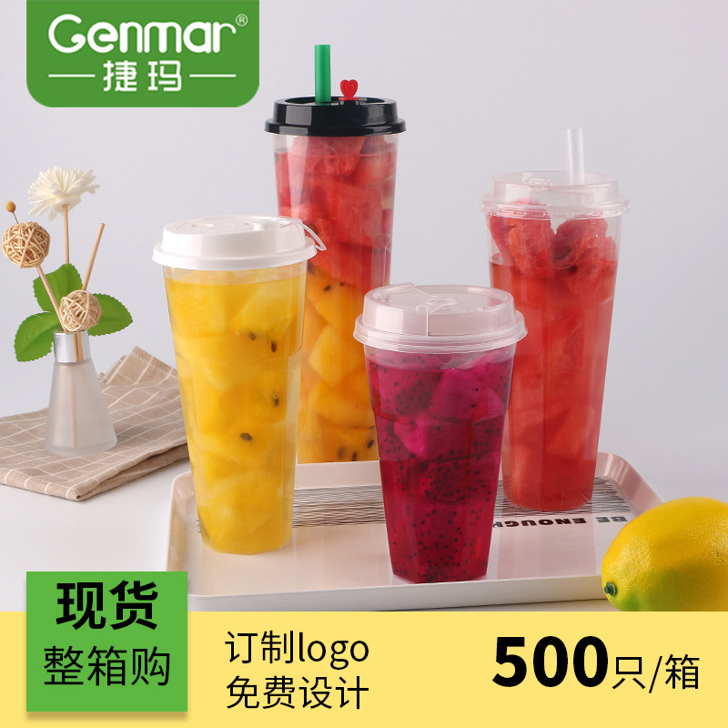 捷玛 90口径注塑杯一次性塑料杯子PP透明杯贡茶奶茶杯八角杯定制