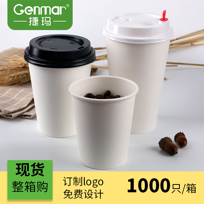 捷玛白色单层奶茶纸杯一次性奶茶杯咖啡纸杯外带打包定做定制批发
