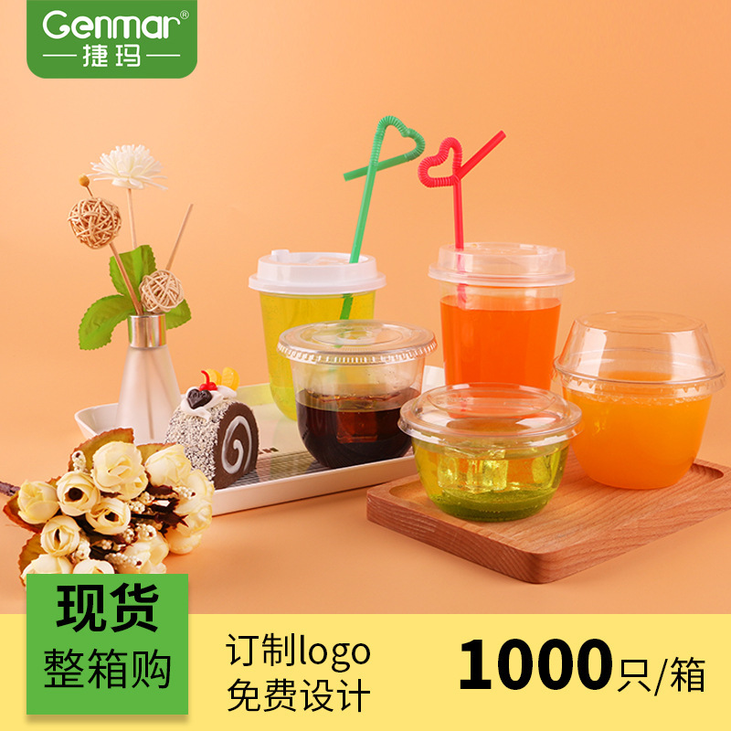 捷玛 95口径透明U型杯pet塑料杯一次性杯子胖胖杯果汁奶茶打包杯